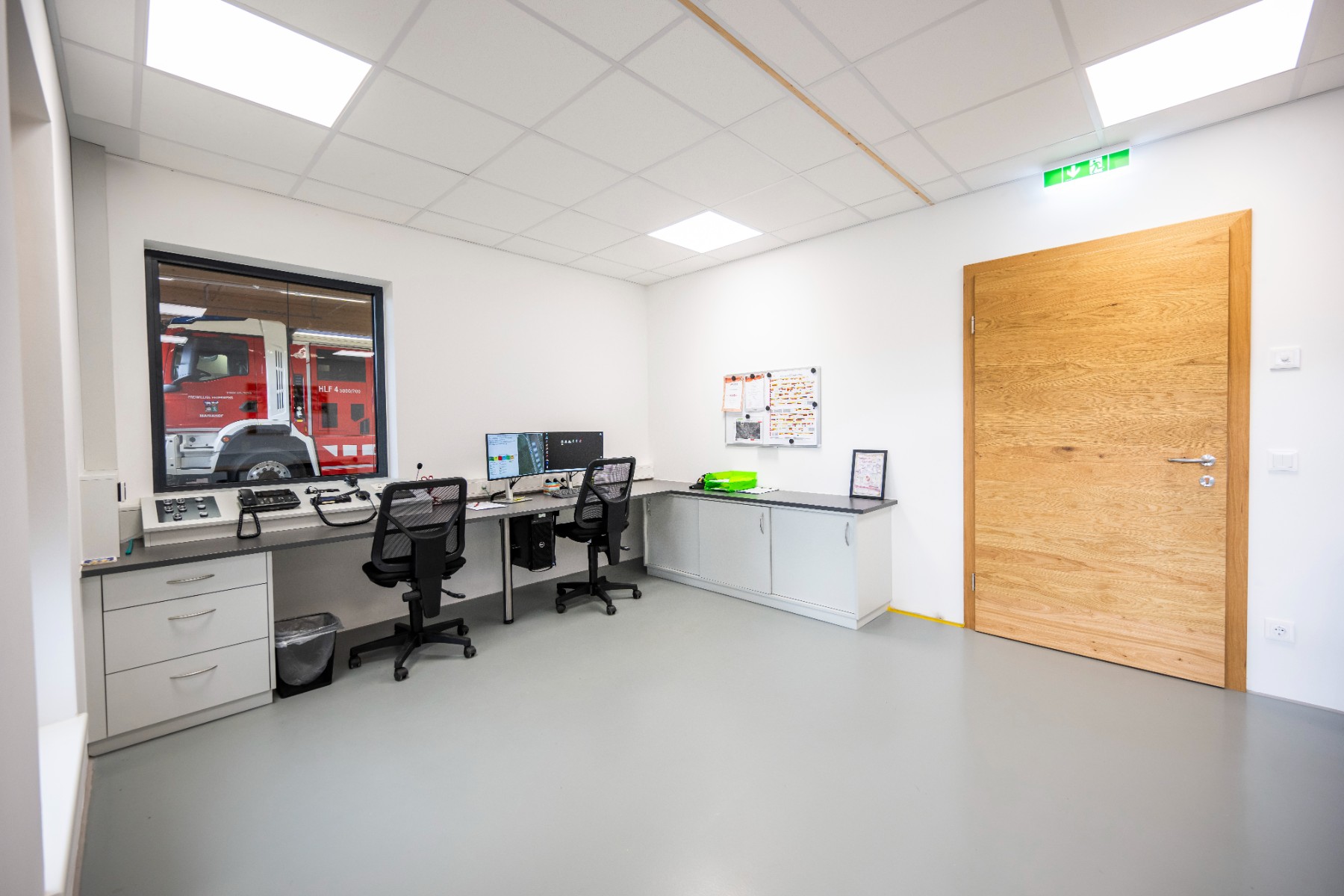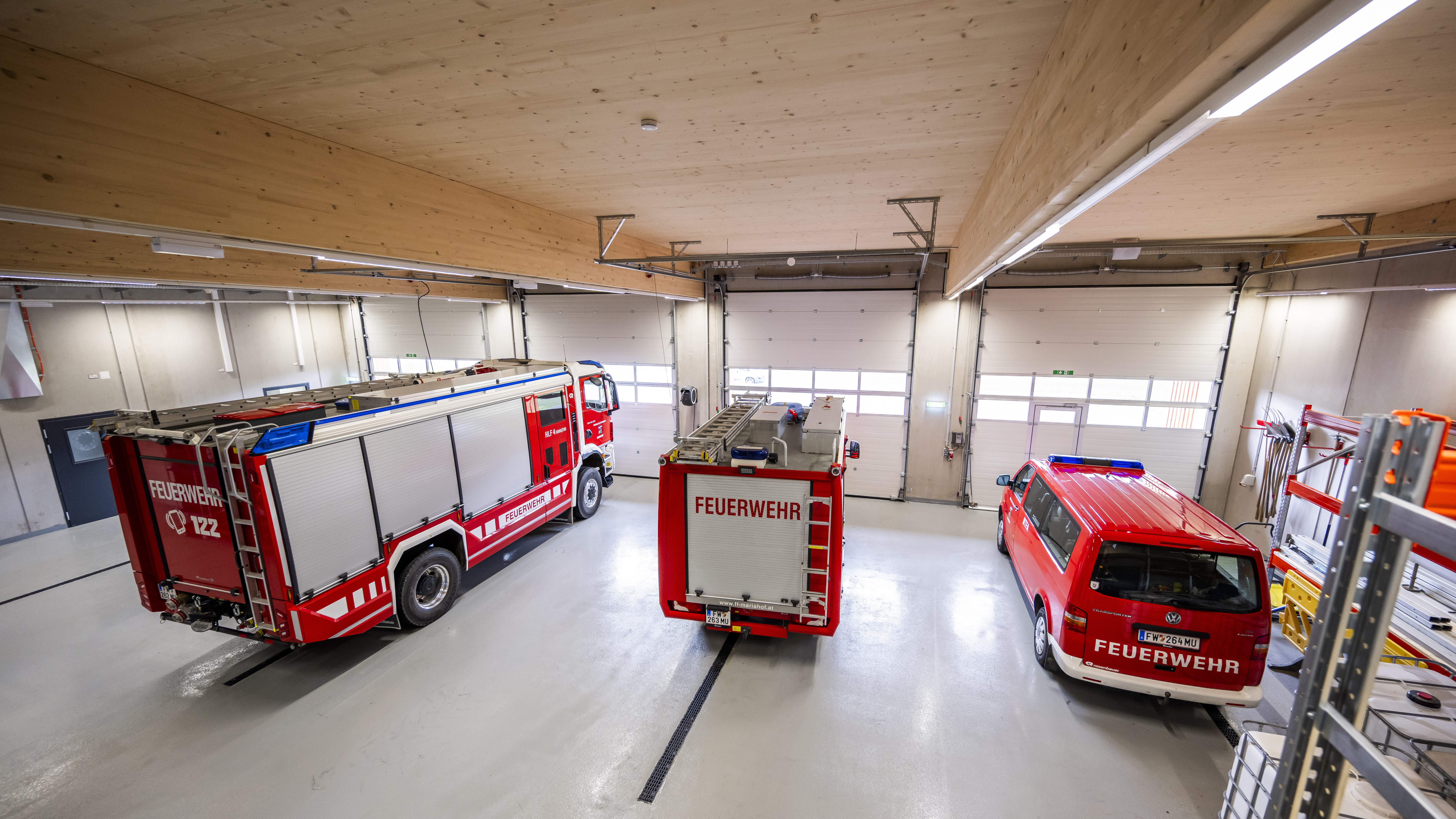 Angrenzend wird eine geräumige Fahrzeughalle mit vier Stellplätzen gebaut, die zusätzlich Werkstätten- und Lagerräume integriert. So wird sichergestellt, dass die Einsatzfahrzeuge und Ausrüstung optimal untergebracht sind.